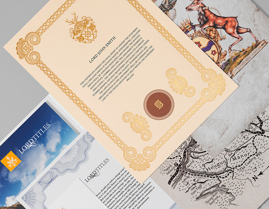 Our title packs are based on a historic English Lord of the Manor title that supports the legal right to use the honorific title Lord or Lady. Please note that we do not guarantee honorific title changes and government documents which do not display any title such as all passports (and in some jurisdictions drivers licences) cannot be updated. Our title packs and associated title rights are based on a historic Lord of the Manor title and have no connection to The House of Lords or British peerages. Within most legal jurisdictions, should you wish to change your honorific title to Lord or Lady (Lord or Lady of the Manor) then you can change this at any time, provided you do not intend to deceive or defraud another person or purport your title to be a peerage.